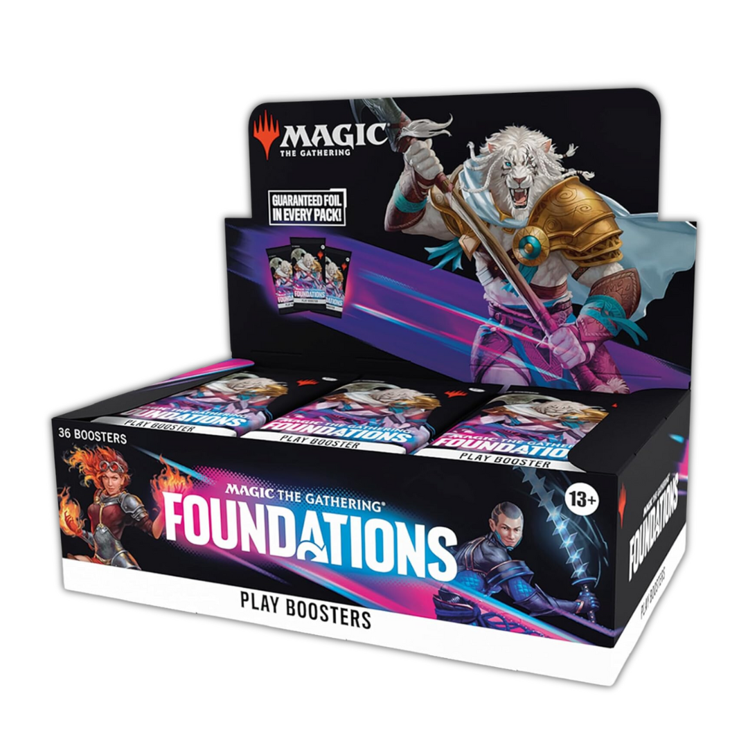 - PLAY BOOSTER BOX CONTENTS—36 Foundations Play Boosters, each containing 14 MTG cards and 1 Token/Ad card or Art card