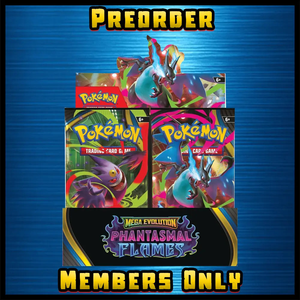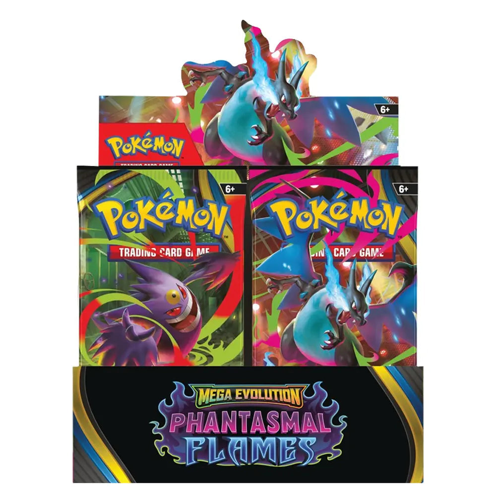 Searing blue flames rip across a dark battlefield as Mega Charizard X ex soars up and looks down upon its opponents! With a deep chill to rival the heat, the shadowy figure of Mega Gengar ex slowly rises into view, and both Pokémon prepare to attack. Determined to prove their mettle, Mega Heracross ex, Mega Lopunny ex, and even more Pokémon line up to give it their all in the Pokémon TCG: Mega Evolution — Phantasmal Flames expansion!FEATURES
