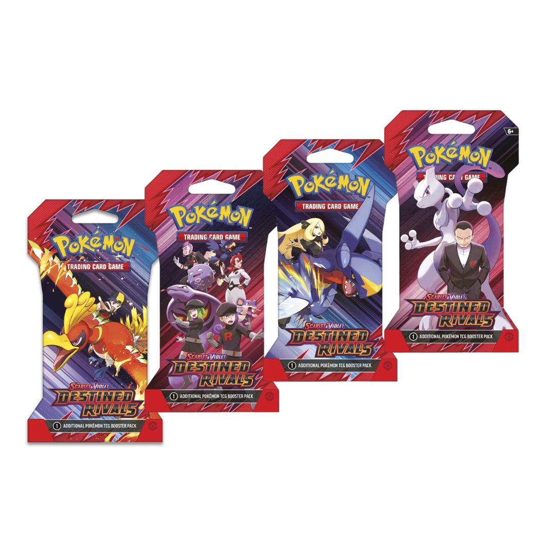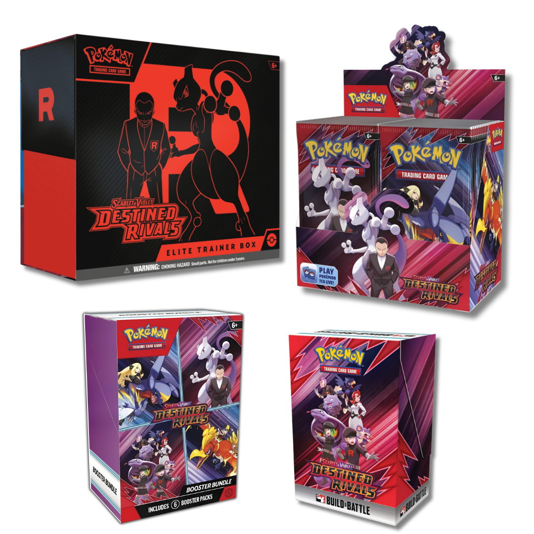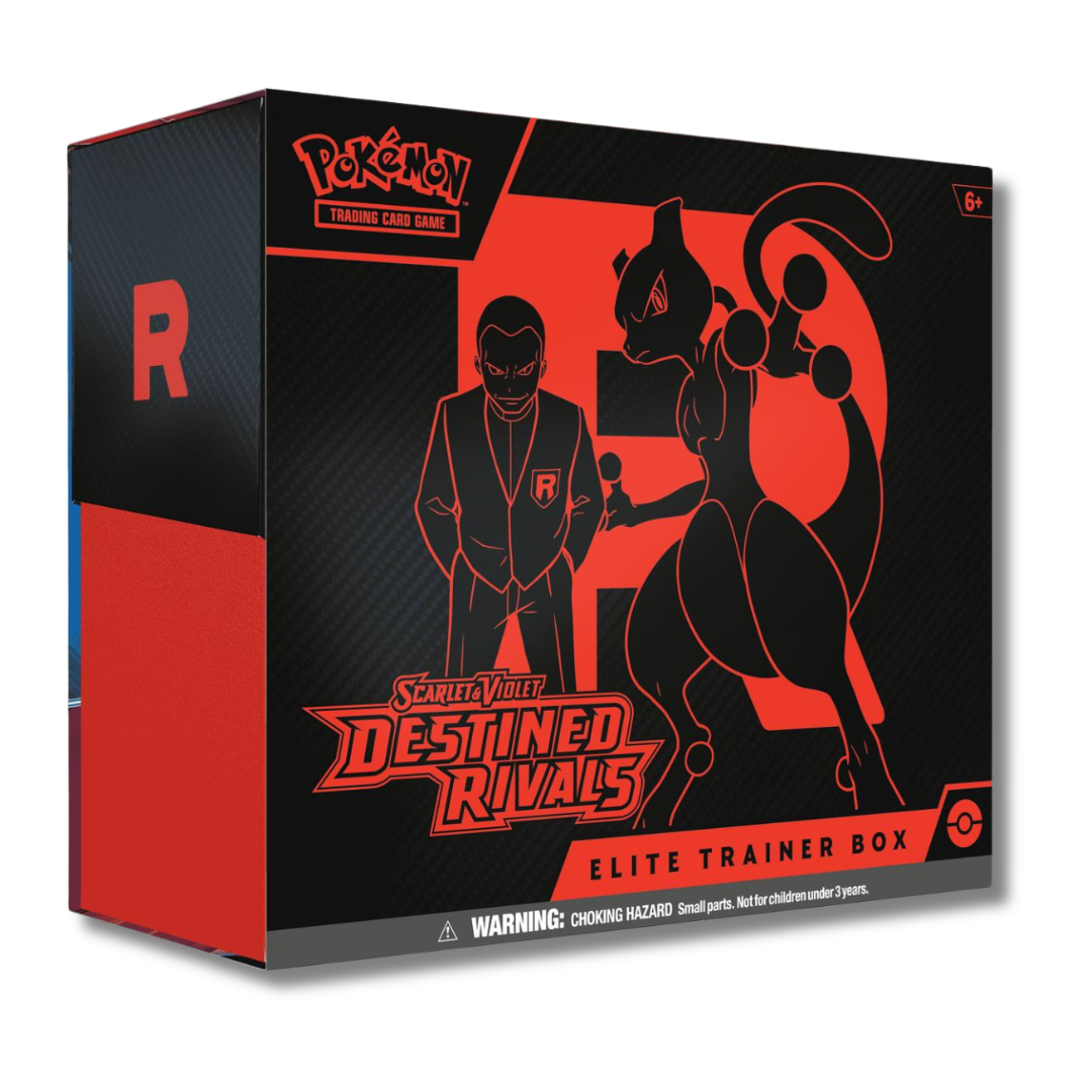 Pokémon Trainers, be on high alert! The nefarious Team Rocket is setting its latest plan into motion, and heroic Trainers are racing to stop it. Join forces with the likes of Cynthia and Garchomp ex, Ethan and Ho-Oh ex, or Arven and Mabosstiff ex… Or reconsider your loyalties and fight alongside Team Rocket’s Pokémon like Mewtwo ex—under the command of Giovanni! Choose a side, assemble your allies, and battle boldly in the Pokémon TCG: Scarlet & Violet—Destined Rivals expansion!
