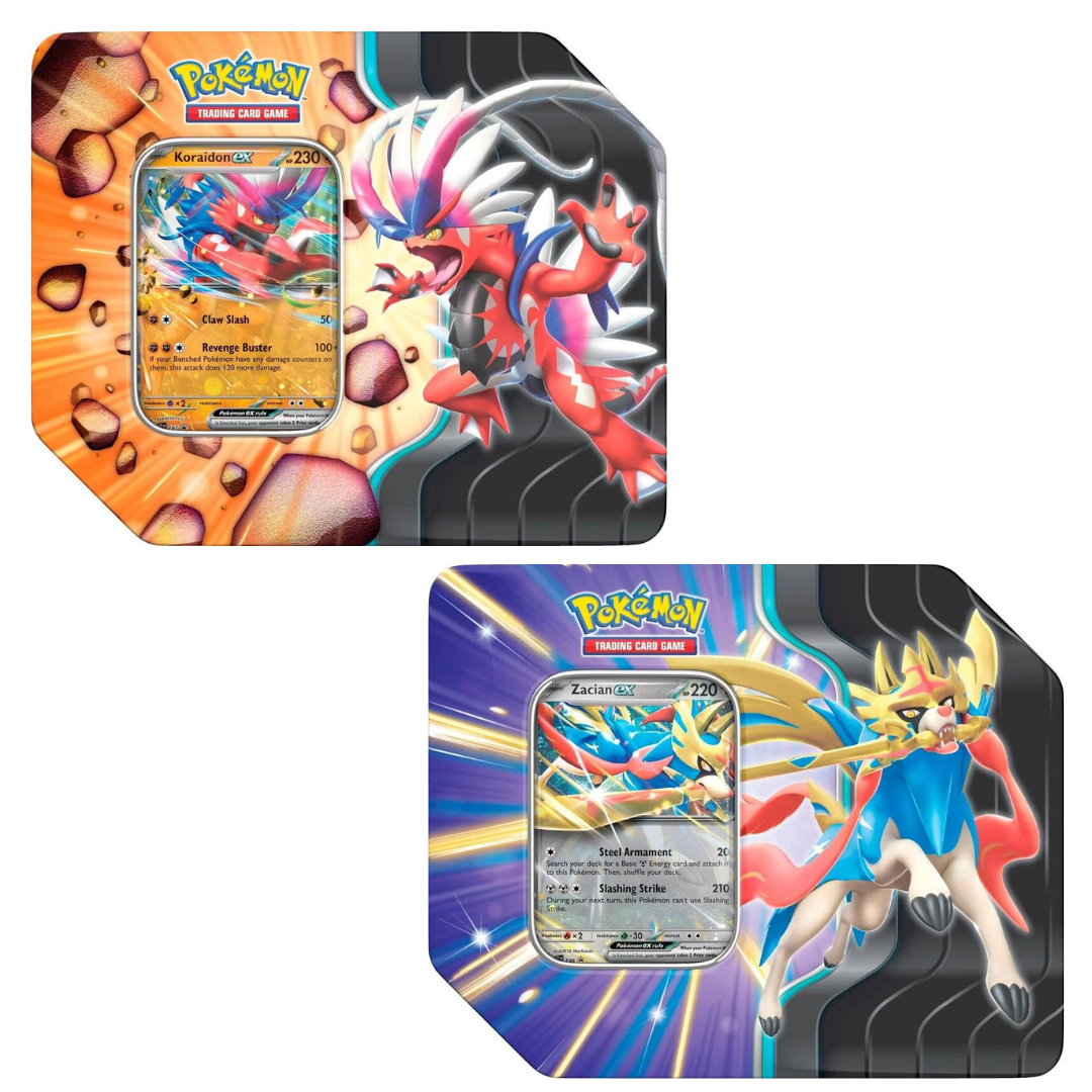 Two powerful Legendary Pokémon, each one ready to tear through the opposition in your next Pokémon TCG match! Will you save the day with Zacian ex, or perhaps you’d like to take Koraidon ex for a spin? Regardless, you’ll find lots of support in the 5 included booster packs.